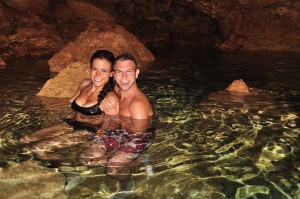 Jesse and I in the under ground cave, ready to swim in the Cenote.