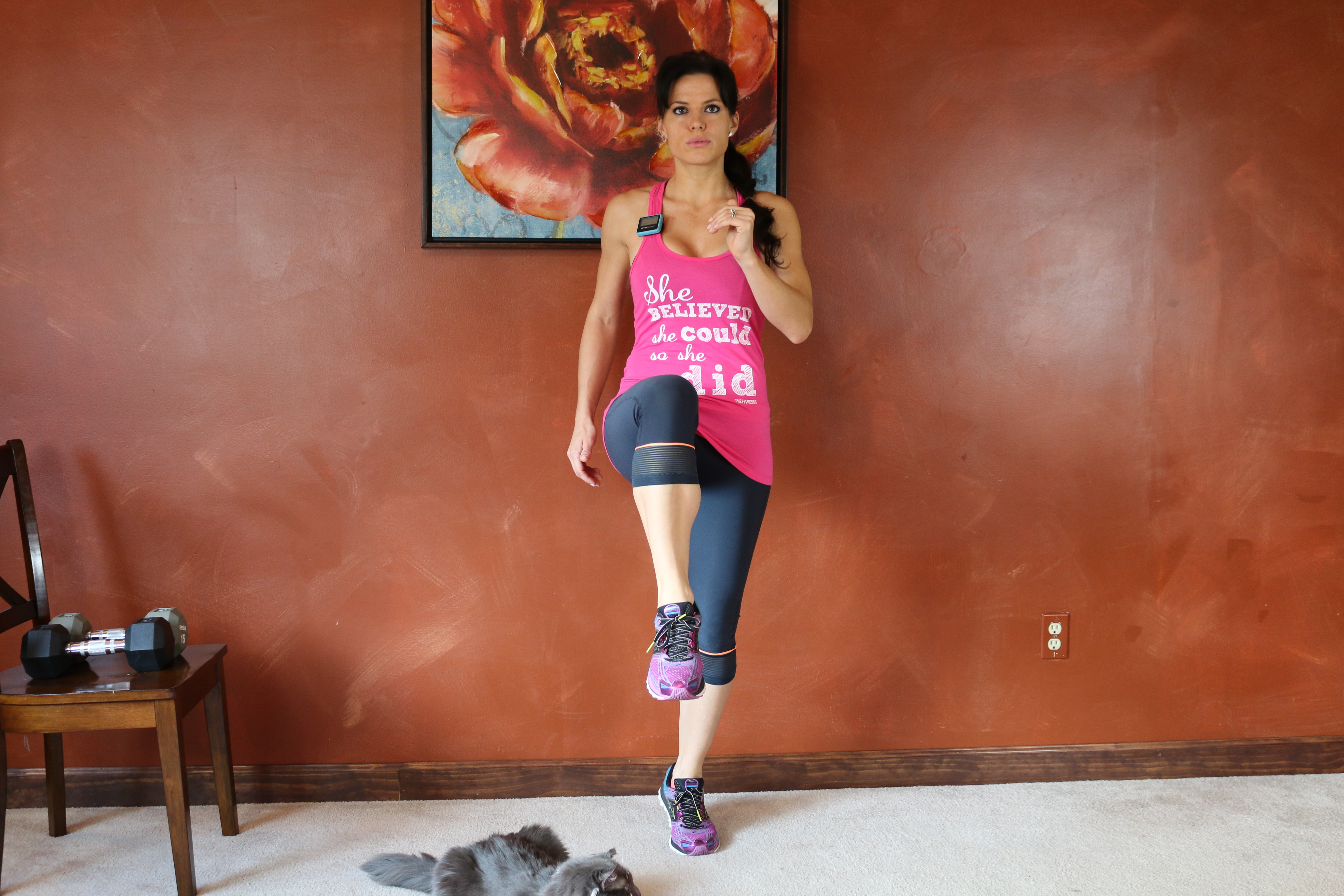 High Knees: Run in place, focusing on keeping your core tight and engaged, and driving the knees as high as you can.