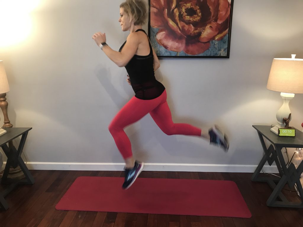 Section 1: *My interval timer setting got messed up, and the timer stopped before the last interval stick with me in the video and get in your lunge jumps. The timer is fixed for the other segments. You will hear occasional baby noises from my daughter from behind the camera.